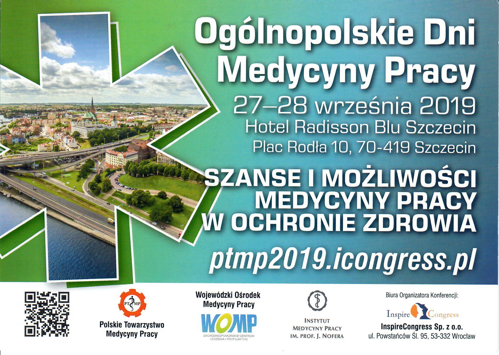 Ogólnopolskie Dni Medycyny Pracy 27-28 września 2019 Hotel Radisson Blu Szczecin